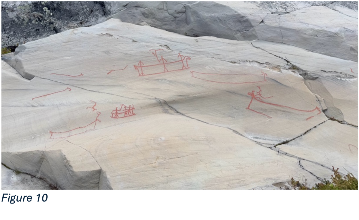As we walk along the rock carvings path, we moved through time and could see the shift in how the land, boats, tools and wildlife shifted by the carvings (Figure 10): simpler reindeer, abundant birds, and elaborately carved boats crowned with moose heads. At the end of the tour, the tour guide left us with a powerful reflection:
